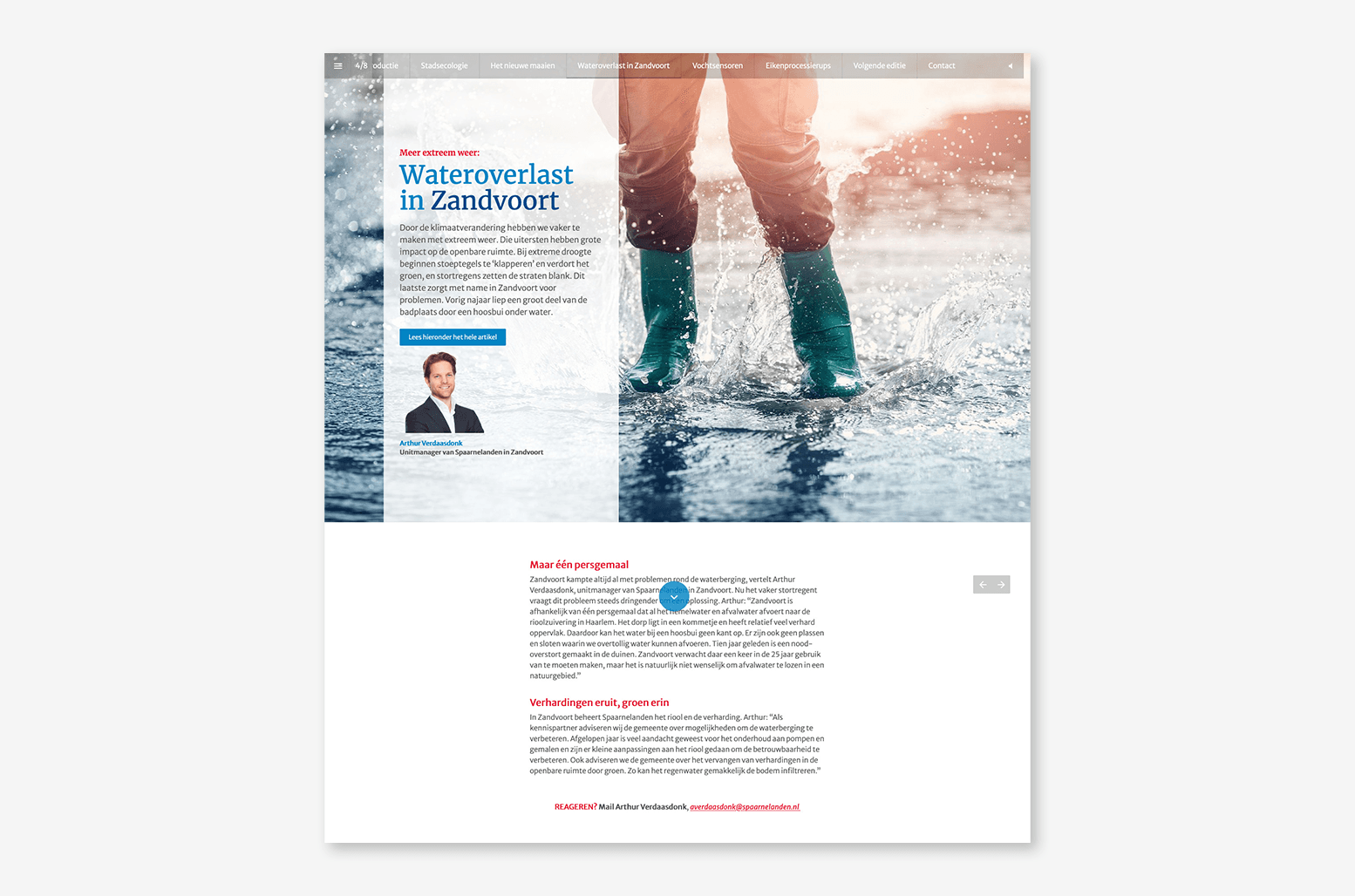 Daar lieten we het niet bij. We kwamen tot het inzicht dat dit ‘themadenken’ ook goed is voor de organisatie zelf. Door hier samen met sleutelfiguren binnen het bedrijf over te publiceren, komt ook nieuwe ontwikkeling op gang. Zo ontstond Buitenkansen, een online magazine voor stakeholders, dat telkens een Spaarnelanden-thema verder uitdiept.