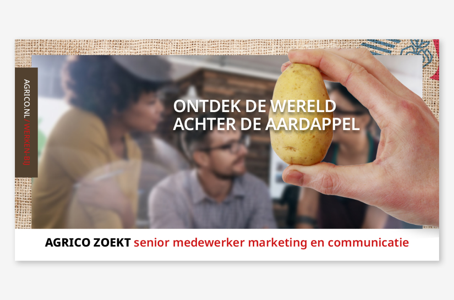 Daar ontdekten we jute. Een prachtig, natuurlijk materiaal, dat pootaardappelen perfect beschermt. Wat een mooie metafoor voor een coöperatie! We kregen dan ook veel bijval toen we jute de hoofdrol gaven in de nieuwe huisstijl van Agrico.
